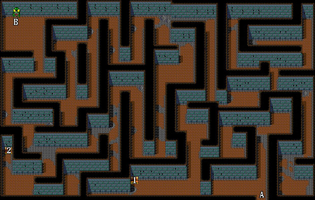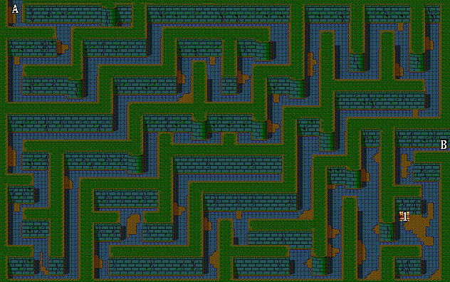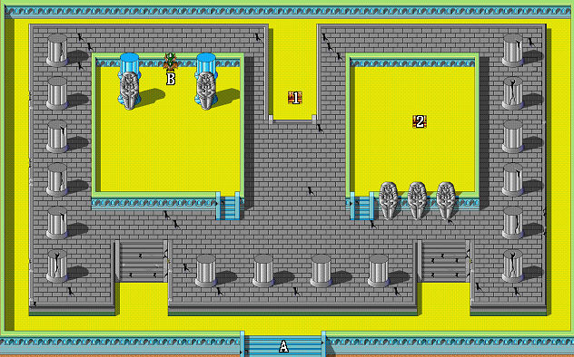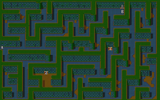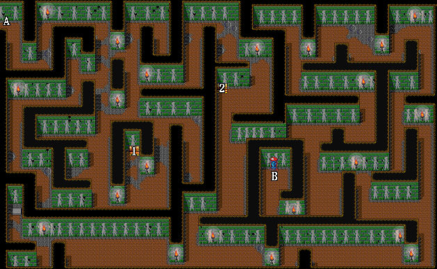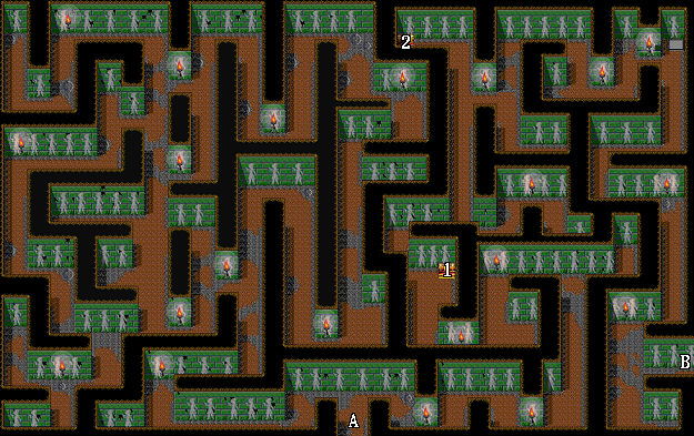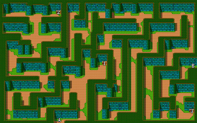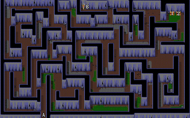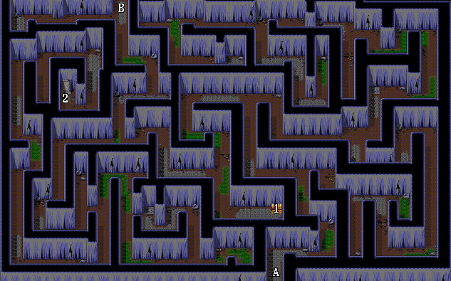 | 1.戰神披風(伊諾裝備) 2.藥草 A.出入口 B.往第二層 |