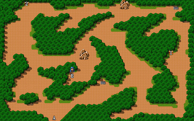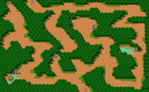 | 1.避邪之針 2.藥草 A.出入口 B.往第二層 |