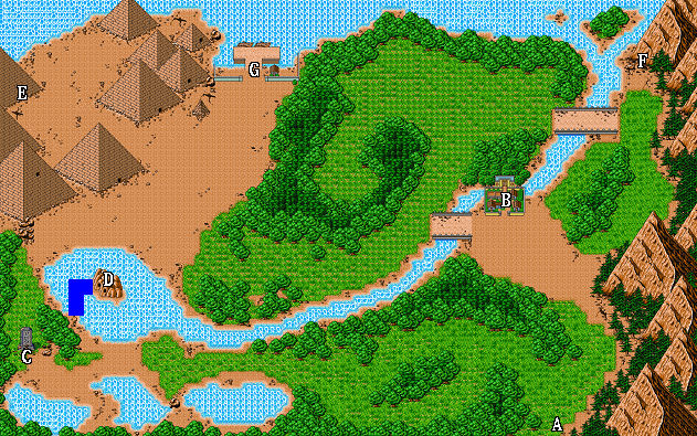 | A.往馬雅蘭洲 B.孟菲斯城 C.石碑 D.納賽湖 E.金字塔迷宮 F.拉斯特岩洞 G.港口(往波里斯大陸) |