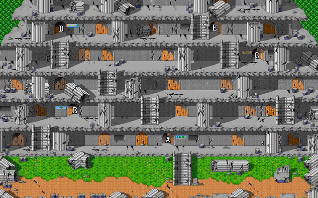 | A.往波里斯大陸 B.龐貝城 C.石廟 D.巨石神兵 E.圓形迷宮 F.馬特龍宮殿 |