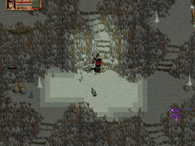 保護:無 備註:遊戲執行後若畫面圖案、顏色錯亂、畫面全黑,請關關DirectDraw加速,或使用DxWnd 以視窗模式執行(但開頭動畫會無法顯示)。搭配其他輔助軟體的狀況如下: 1.dgVoodoo2:不定時當機(包括視窗模式)。 2.WineD3D:對話過場時,背景全黑(同PCem+Win98未關關DirectDraw加速的情況)。 3.DDrawCompact:顏色錯亂。 4.D3DWindower:進入遊戲時當機。 5.SoftGPU(VMware+Win98):同WineD3D,但關關DirectDraw加速無效。 密技:以下列方式啟動遊戲: Game.exe yoki 進入遊戲後按Enter鍵,再輸入下列字串(大小寫皆可): FIGHT = 無敵 MAGIC = 可學得全部的魔法,使用不扣妖力值 RAISE # = 各主角升級一次 (#為要加的級數) GETOBJ # = 得到物品 (#為物品編號) GOLD # = 得到金錢 (#為要加的數目) FOG = 迷霧開關 以下為遊戲測試用,儘量不要使用: MAP = 遊戲地圖(使用後可能會有當機狀況) SETEVEN = 設定事件 VIEWEVEN = 觀察已設事件 VIEWMSG = 觀察訊息流向 SCREEN = 攫取螢幕畫面 BUY # = 買賣系統測試 (#為要測試的項目) 操作: 滑鼠左鍵 = 動作/移動 滑鼠右鍵 = 招式 Tab = 小地圖顯示切換 Space = 物品快捷列顯示切換 1~4 = 人物欄 S = 快速存檔 L = 快速讀檔 Esc = 系統選單