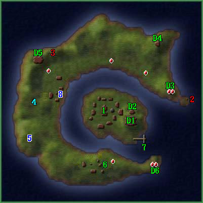 | 8 | 泉水:永久+2速度,直到>=16 | D1 | 海盜堡壘 | D2 | 潛水艇洞穴 | D3 | 雷格那地底隧道#2 | D4 | 老羅伯的洞穴 | D5 | 廢棄海盜碉堡 | D6 | 雷格那地底隧道#3 |