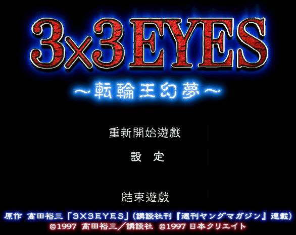 名稱:三隻眼變成/3X3EYES:轉輪王幻夢 (中文版) 簡介:日本Create 1997年出品的故事劇情閱讀遊戲,2000年由松崗中文化並代理發行 [待補]。![]()