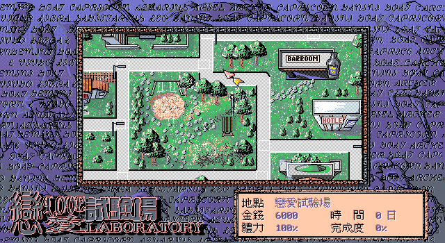 名稱:戀愛試驗場 (Love Laboratory,中文版) 簡介:花道電腦1994年出品的戀愛冒險劇情故事遊戲 [待補]。 保護:圖案密碼,破解碼: PLAY.EXE 3A 46 F4 75 38 88 -- -- -- 00 3A 46 F5 75 27 88 -- -- -- 00 3A 46 F6 75 16 88 -- -- -- 00 3A 46 F7 75 05 88 -- -- -- 00