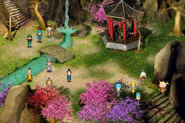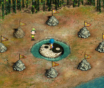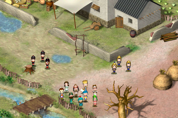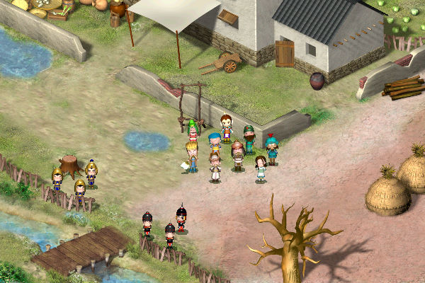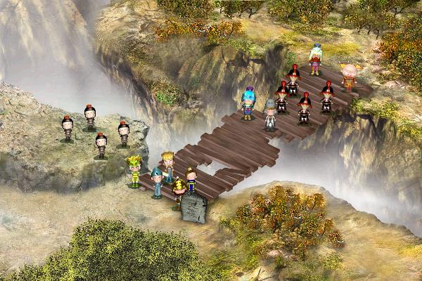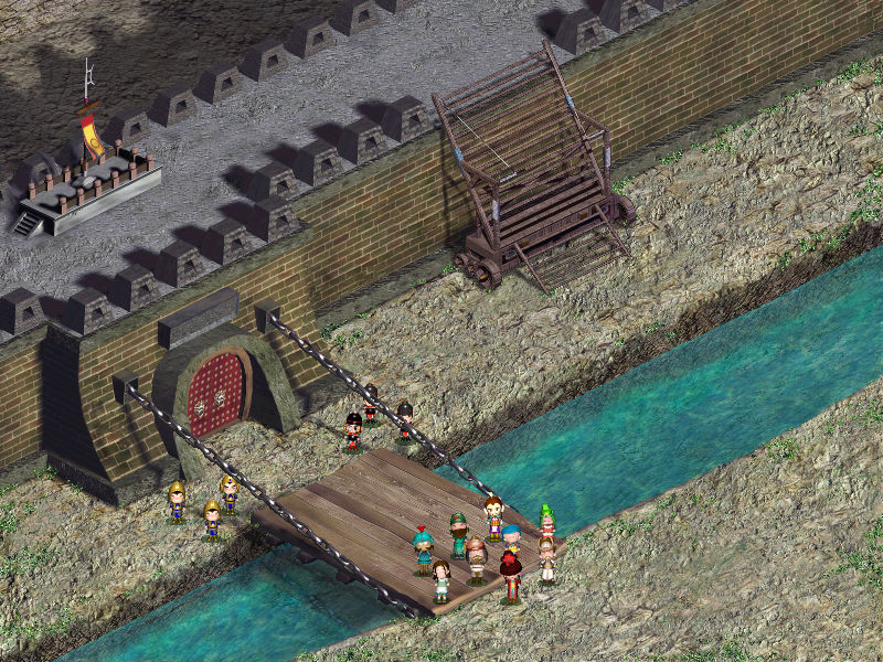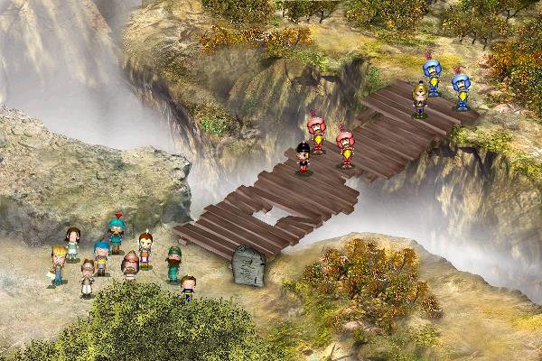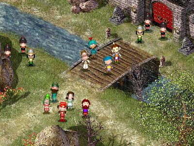說明:所有人員在右上方橋頭空地佈陣,讓弓箭手前去射擊敵人,引敵人過來然後逐一消滅,
