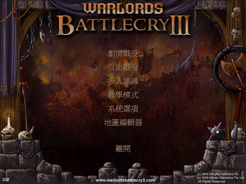 名稱:戰神:狂神天威3/呼嘯戰神3 (Warlords Battlecry 3,繁中/簡中版) 簡介:Infinite Interactive 2004年出品的即時戰略遊戲,由光譜中文化並代理發行 [待補]。 保護:光碟SecuROM 5.03 檔案:chs_nocd.rar = 簡中版免光碟檔