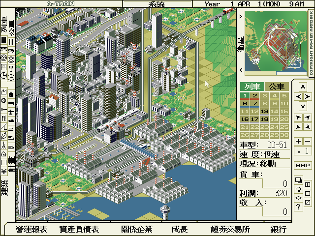 名稱:A列車4 (A-Train 4,中文版) 簡介:Artdink 1995年出品的都市開發鐵道模擬遊戲,由第三波中文化並代理發行 [待補]。![]()