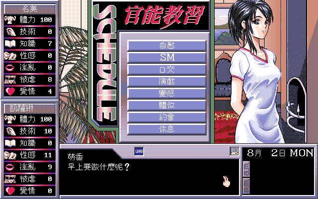 各項技能,只是這些色情課程都有點日式的煽情成份。遊戲的圖片頗為漂亮,算是蠻