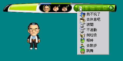 名稱:玩玩總統 (中文版) 簡介:甲尚2000年出品的桌上動態人物模擬遊戲,由大宇代理發行。模擬的人物計有連戰、 宋楚瑜、陳水扁等三人 [待補]。 保護:無 限制:遊戲需要安裝Microsoft Agent,只能在Win9x系統上執行。