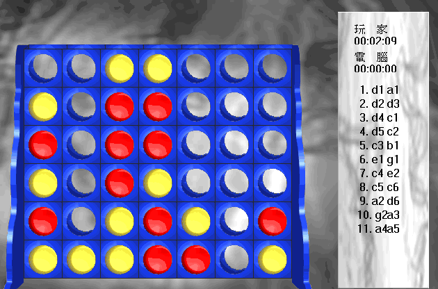 形成四子連線,即算獲勝。遊戲對戰角色可任選玩家或電腦,並提供無限次的悔棋,