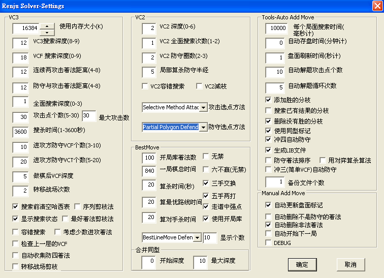4.Best Move裡右邊的選項用來決定採用的五子棋規則,可視需要勾選。