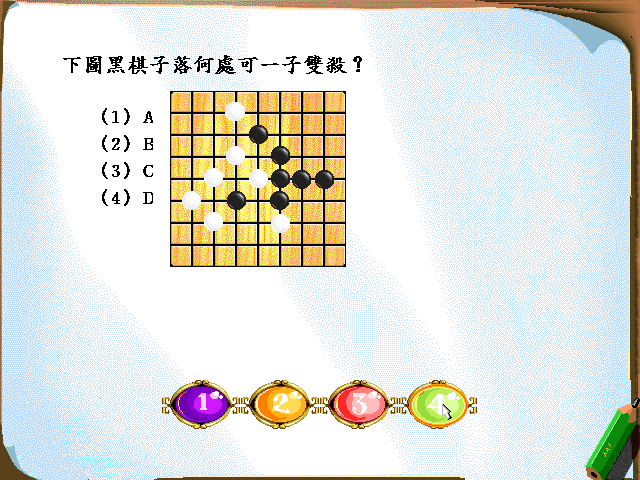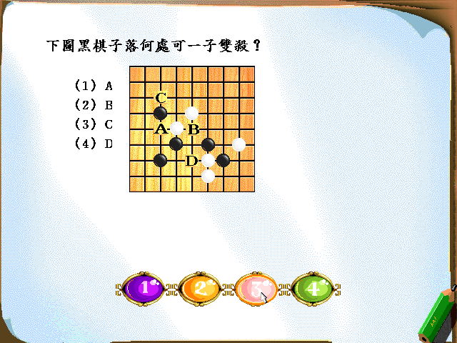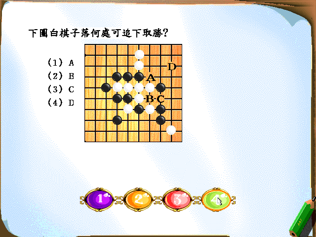 職業五子連珠對局中雙方出現爭議,[(1)由裁判判決] 職業五子棋共有[(3)9]個段位 職業五子棋之段位之下又設[(4)10]個級別 職業五子棋段位最高是[(4)9]段 職業五子棋級位最高的是[(2)1]級 職業五子棋比賽時間有[(2)4]個級別 職業五子連珠,雙方的執黑執白確定方式為[(3)選定執黑執白後猜子數,大數減小數,單數黑白互換,偶數不換] 五子棋比賽的最短時間是[(2)15分鐘] 五子棋比賽的最長時間是[(2)5小時] 符合職業五子連珠競賽規則的是[(4)比賽結束後,雙方將棋子放回原處]![]()