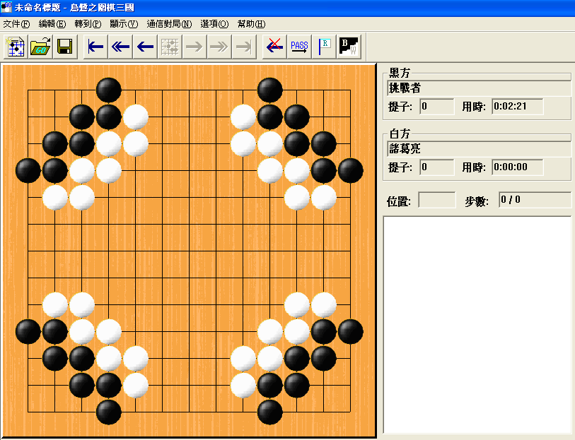 2.過關破陣:選擇或新建人物,不斷破陣(下贏電腦)以提升棋力等級。