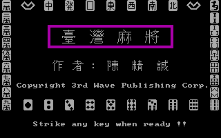 簡介:第三波1987年出品的16張麻將遊戲,由陳精誠以BASIC語言撰寫。整個遊戲非常陽春,