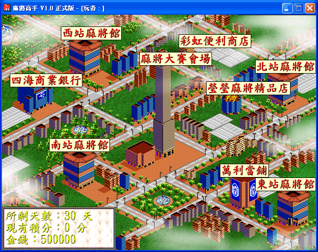 1.麻將館進入,每次費時一天,可使用秘技,一直打到有人金錢輸光時結束,或自行離開。