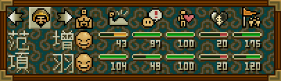 ![]() | 城池人口數 | ![]() | 駐軍兵員數 | ![]() | 每年稅收 | ![]() | 駐軍將領數 |