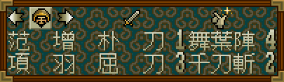 ![]() | 更換所在城池將領的武器(須為該將領慣用的武器類型),不消耗此回合 |