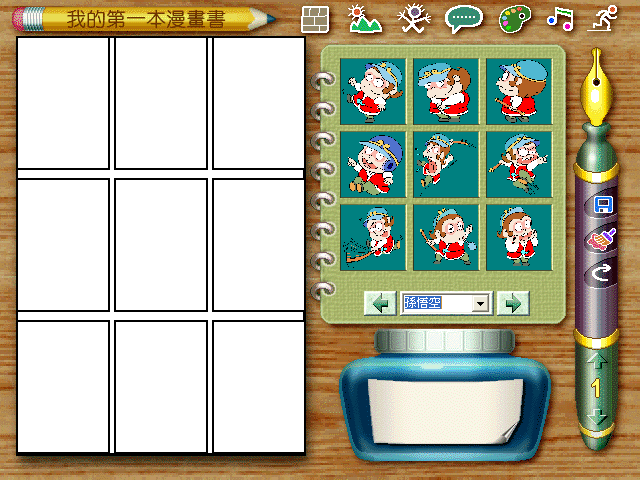 名稱:我的第一本漫畫書 (中文版) 簡介:皇嘉科技1997年出品的兒童漫畫製作教學遊戲,由皇統光碟代理發行,另外還提供了 拼圖、記憶翻牌等兩個小遊戲。由於操作較為複雜,不適於學齡前的幼兒 [待補]。 保護:光碟 限制:遊戲為16位元程式,只能在Win31/9x/XP上執行。