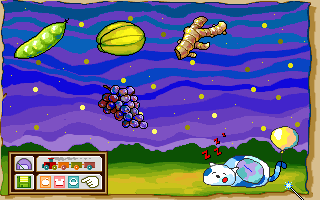 | 1.蓋住的蔬果 2.指定的蔬果 3.變更難易度等級 4.系統選單 5.回到主選單 6.回到上一個選單 |