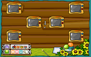 | 1.蓋住的蔬果 2.可選擇的蔬果 3.變更難易度等級 4.系統選單 5.回到主選單 6.回到上一個選單 |