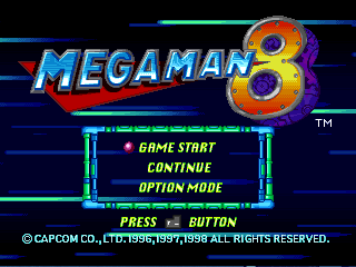 名稱:洛克人8:金屬英雄們 (Rockman 8/Mega Man 8,中文/英文版) 簡介:CAPCOM 1996年出品的動作遊戲,2017年經由Steam移植至Windows,收錄在「傳奇合輯2 (Legacy Collection 2)」裡 [待補]。 備註:本版為傳奇合輯2,請參見洛克人7 保護:Steam 操作: Enter = 開始/略過劇情動畫 Z = 攻擊 X = 跳躍 Shift = 特殊武器 W = 選擇武器 A/D = 更換武器 ~ = 功能選單