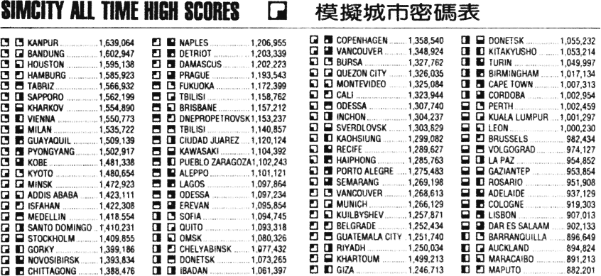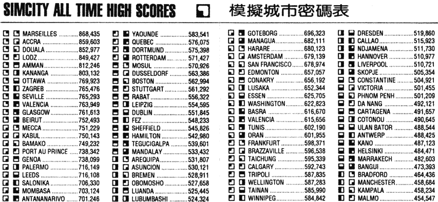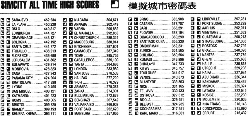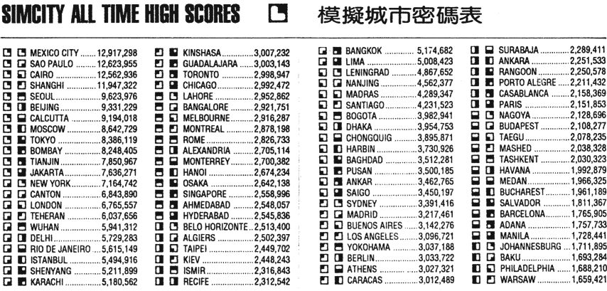 模擬城市 密碼表