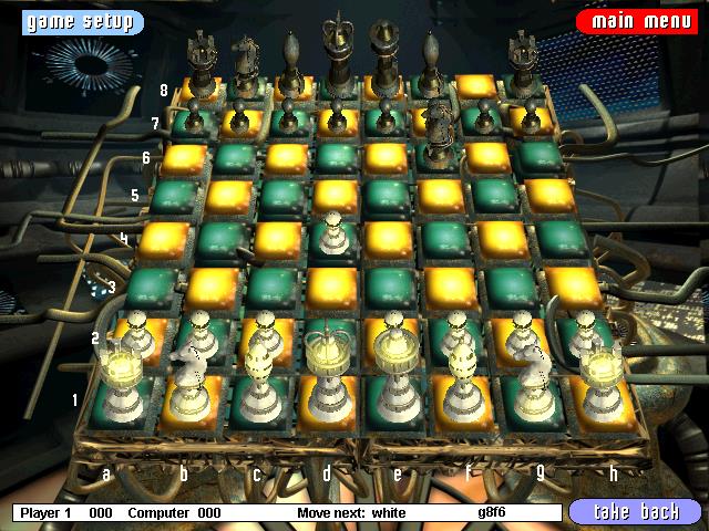 名稱:瘋狂象棋 (Cyber Chess,英文版) 簡介:Cosmi 1999年開發的西洋棋遊戲。遊戲一開始的動畫和圖片都非常吸引人,但就只是 片頭與背景,整個遊戲就只有下棋一個功能而已,連想設定殘局都沒有。不過遊戲的 棋力不弱,下棋也頗快速,並提供2D/3D棋盤,因此也是可以一玩。 保護:無,可直接在光碟上執行。 限制:記憶體不可超過1850MB,否則進入地點後會出現not enough memory錯誤。 說明:西洋棋規則。