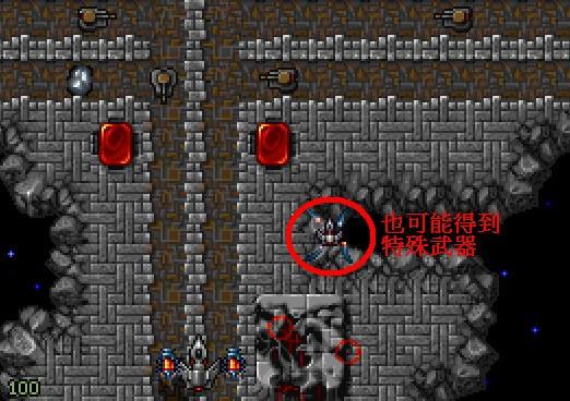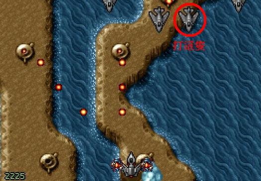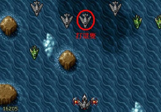 (1)打完第3隻大型飛機後第一群快速敵機,打掉右邊第2隻可得特殊武器或提升Front武器