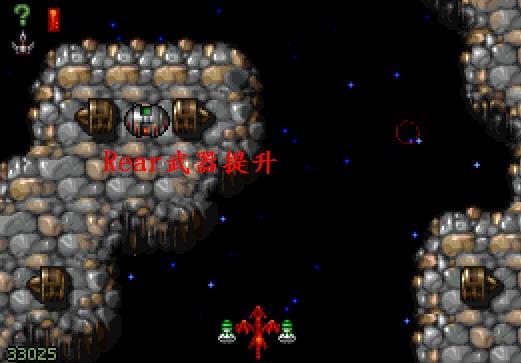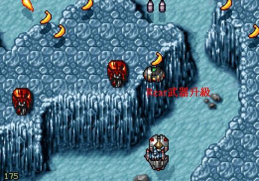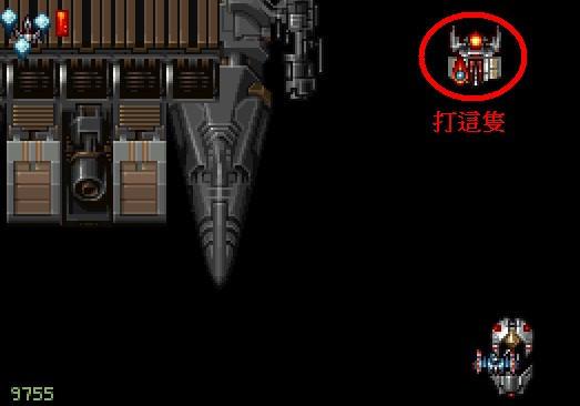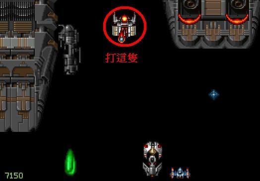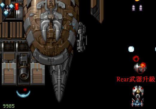 (2)左邊第二組U型敵機第一架等它往上飛時再打下它,可得提升Rear武器等級。