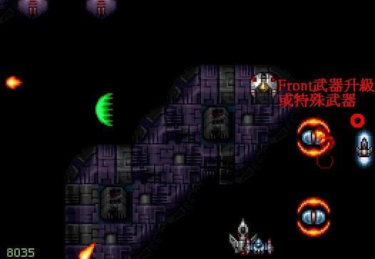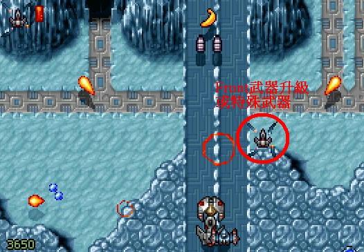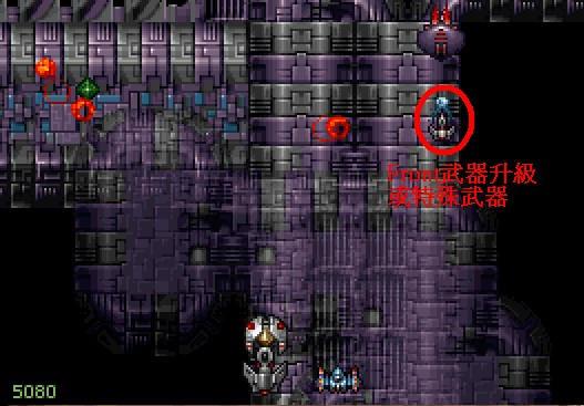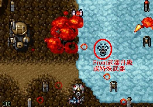 (1)左邊第一架U型敵機等它往上飛時再打下它,可得特殊武器或提升Front武器等級。