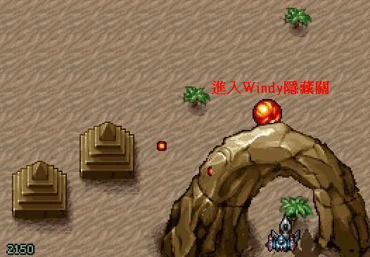 (1)第2道拱門(右邊)第一隻敵機打掉,會出現可進入Windy隱藏關的泡泡(打到就非吃