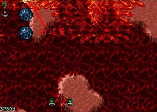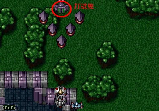 (1)過大型ㄇ字艦後第5群敵機(幾乎不動),打掉中央那隻可得到特殊武器或提升Front