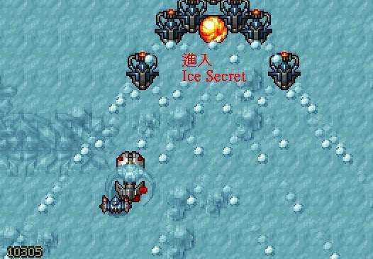 (1)後方敵人出現完後,前方一群左右射快速子彈的敵機中,會出現可進入Ice Secret隱藏