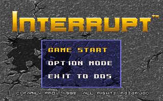 名稱:機甲戰神 (Interrupt,英文版) 簡介:Family Production 1995年製作的動作戰鬥遊戲,由歡樂盒代理發行 [待補]。 保護:數字密碼,破解碼: INTER.EXE C7 06 B2 04 09 (不出現密碼) -- -- -- -- 00 或 TITLE.EXE 0B C0 75 09 (密碼隨便輸入) 31 -- -- -- 操作: Alt = 攻擊 Ctrl = 跳躍/飛行 Enter = 查看等級 F1 = 暫停 F2 = 音樂開關 F10 = 結束離開