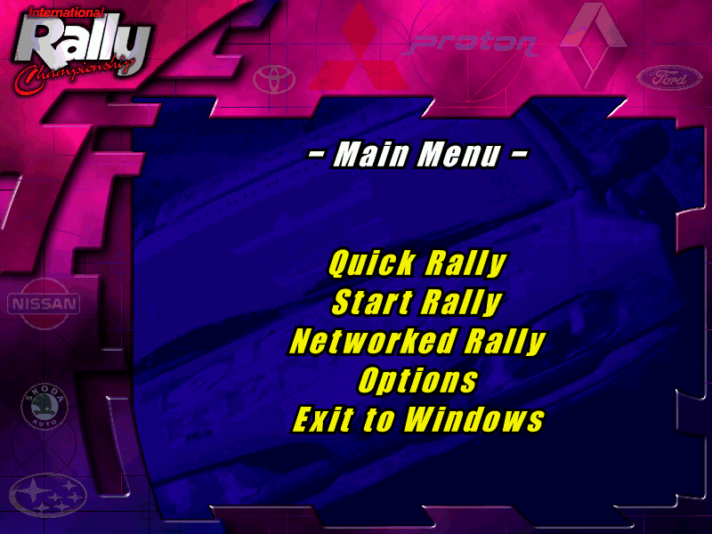 保護:無,但放入原版光碟才有背景音樂 備註:必須使用更新檔才能在XP以上系統執行,Win64系統需再配合DxWnd執行。 檔案:International-Rally-Championship_Patch_Win_EN_Patch-480 = 4.80英文更新檔 操作: ' = 加油 ; = 剎車 ZX = 左右轉 C = 車頭顯示開關 Esc或P = 系統選單